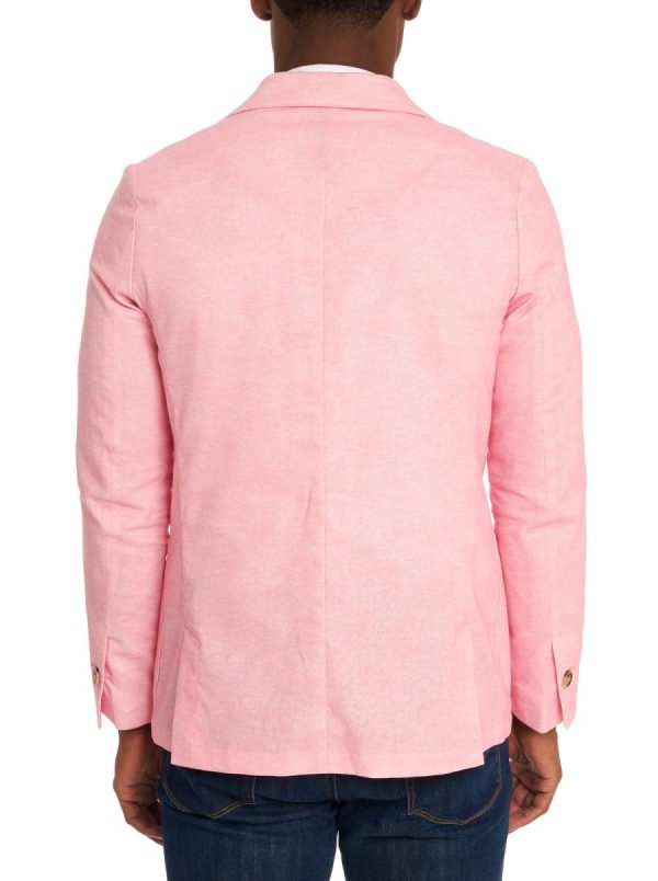 This two-button, notched lapel linen blend barely-there blazer ensures that you’ll always be in the pink this season. With Knowledge Wisdom Truth signature embroidered under the collar.