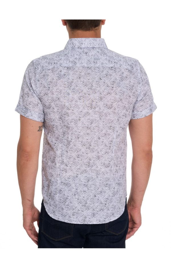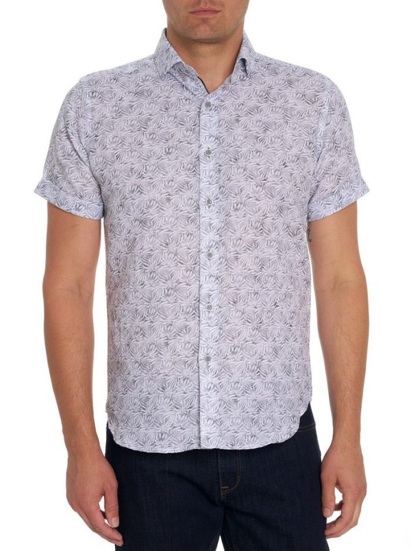 A tonal floral print on a changing ground color lends real sophistication to this short sleeve linen blend shirt that is perfect for the warm days ahead.