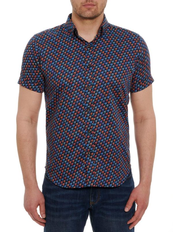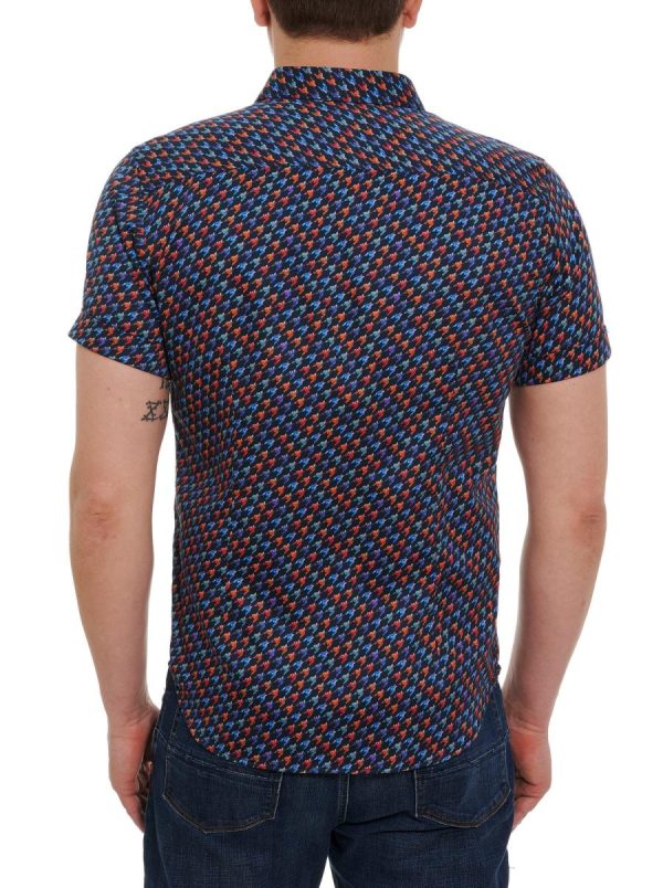Got a flair for style? Slide on this 100% cotton spaceship houndstooth #WearableArt short sleeve button down.