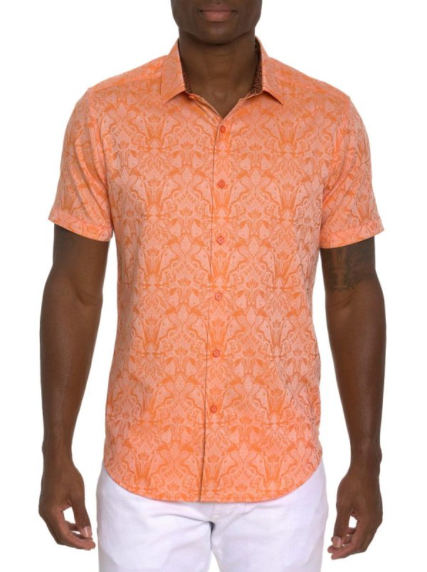 You’ll love this RG best seller and Collector favorite. Now discover our newest essential jacquard, The Highland. A damask motif is celebrated on this stretch cotton jacquard short sleeve button down shirt. Flip the collar for a contrast print.
