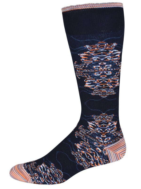 Large geometric floral shapes adorn this RG sock with detailed line drawings.